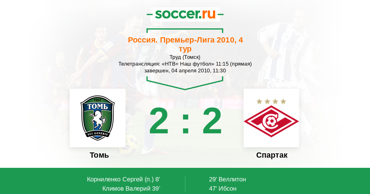 Протокол матча Томь против Спартак