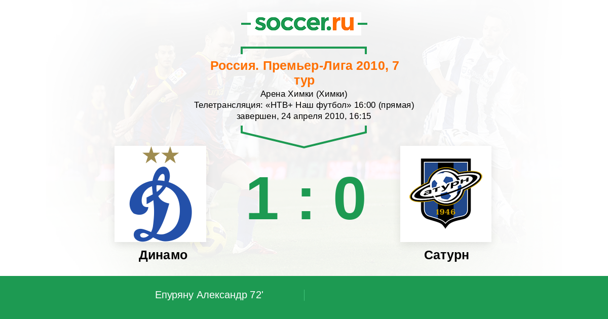Протокол матча Динамо против Сатурн