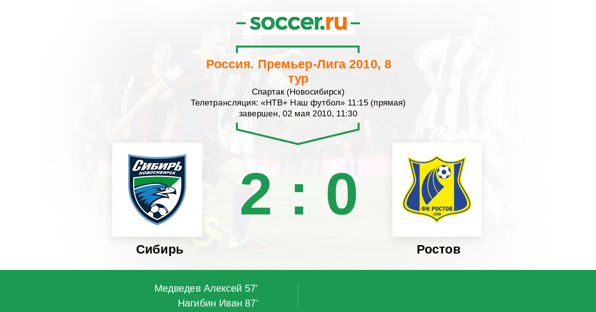 Протокол матча Сибирь против Ростов
