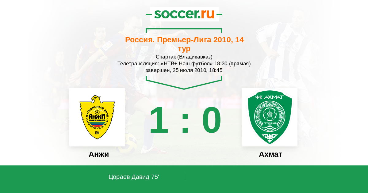 Протокол матча Анжи против Терек