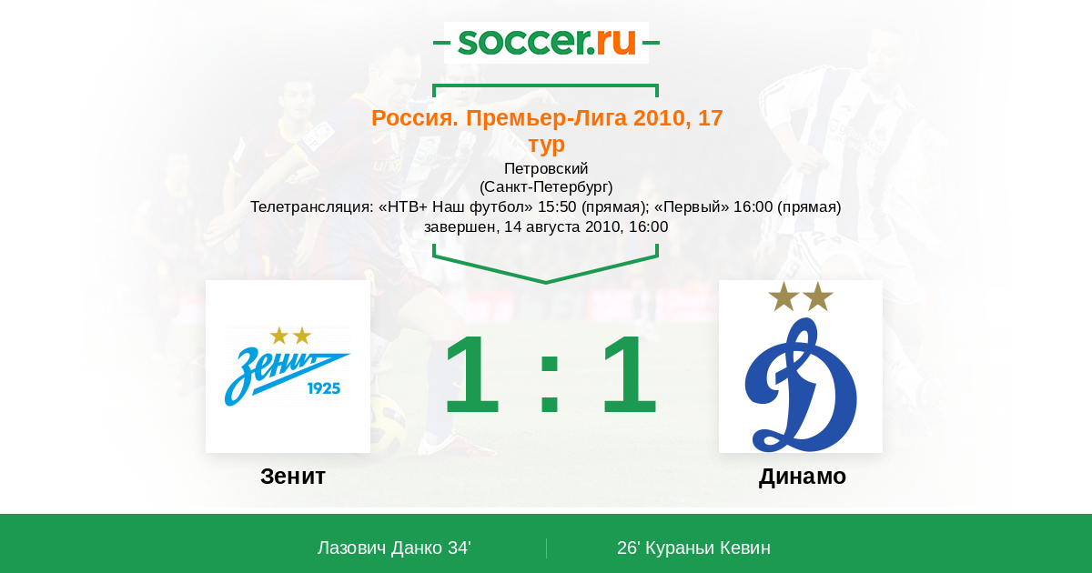 Протокол матча Зенит против Динамо