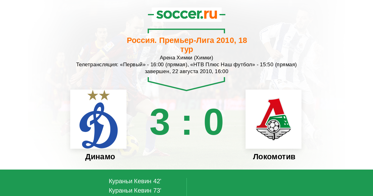 Протокол матча Динамо против Локомотив