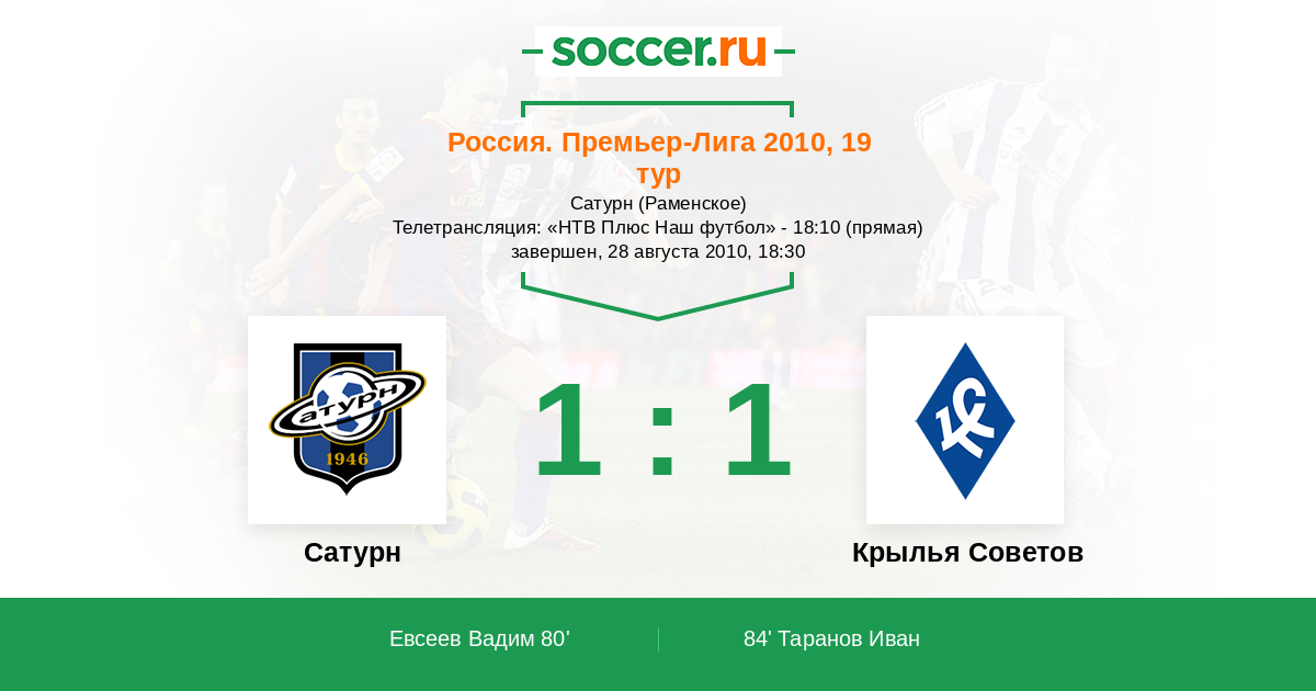 Протокол матча Сатурн против Крылья Советов