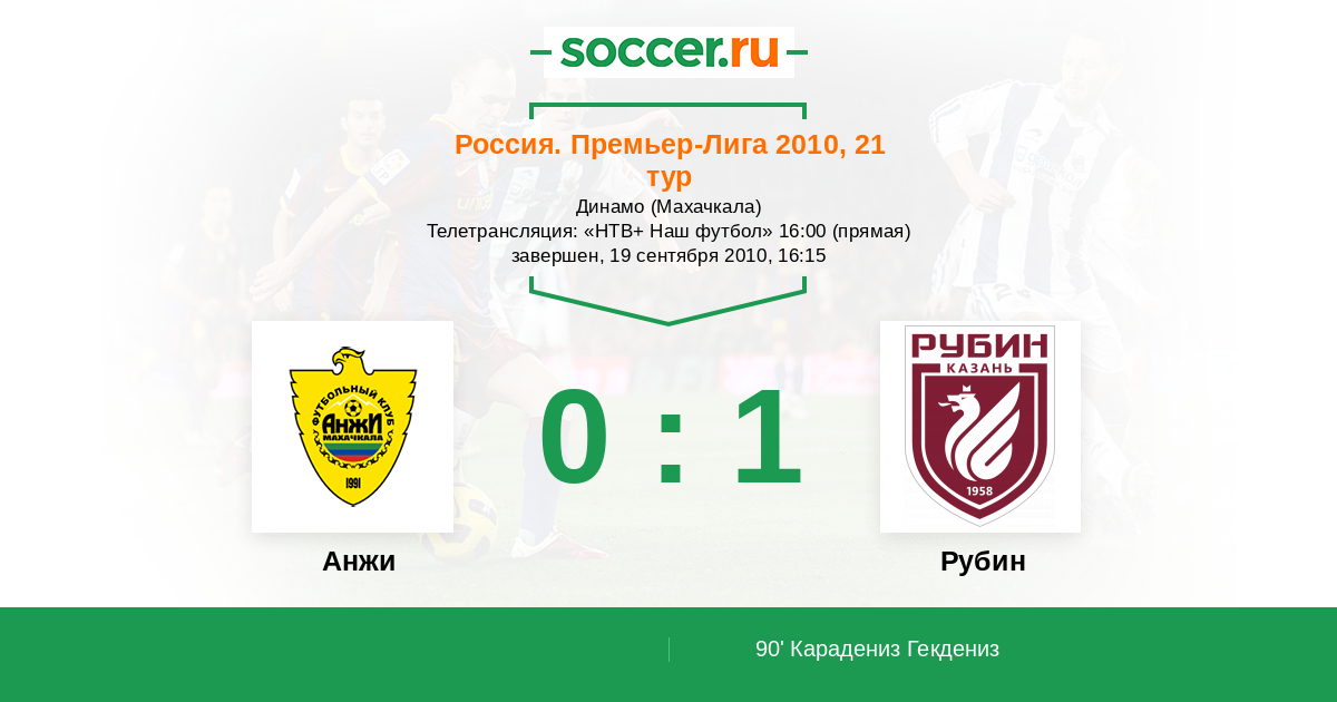 Протокол матча Анжи против Рубин