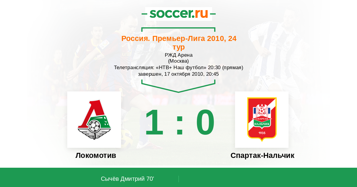 Протокол матча Локомотив против Спартак-Нальчик