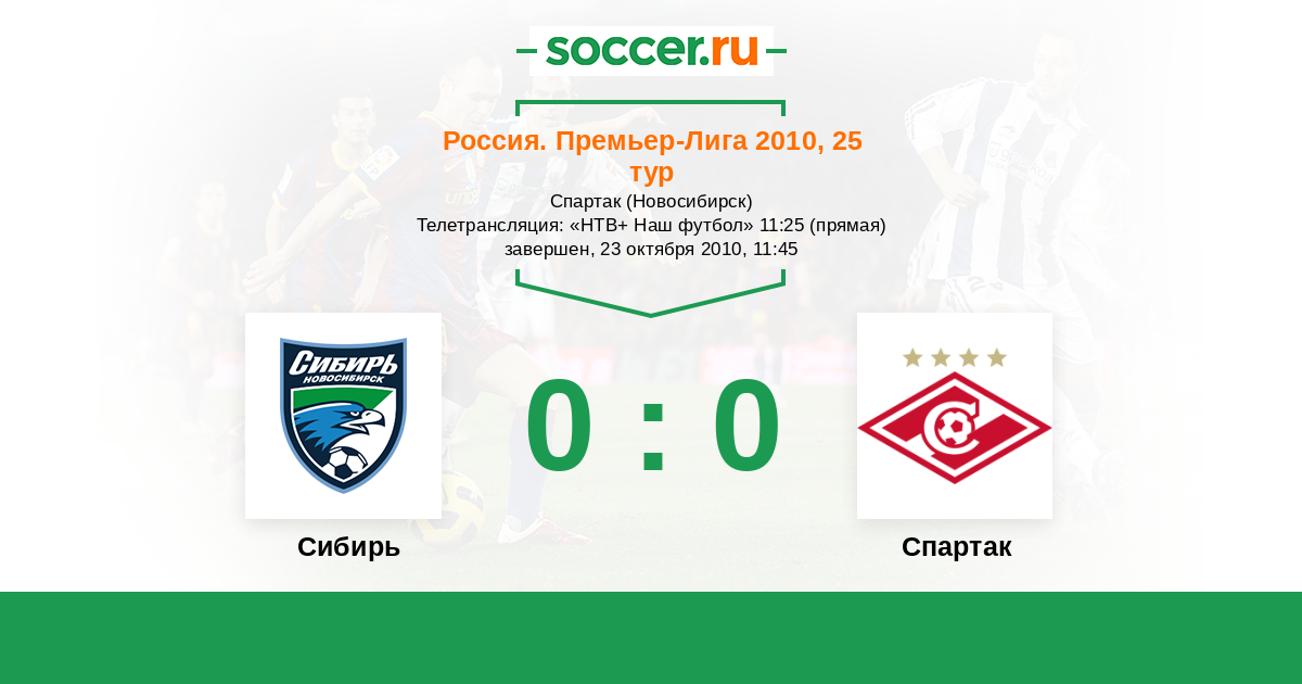 Протокол матча Сибирь против Спартак