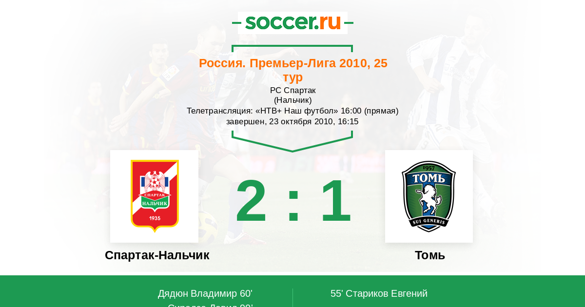 Протокол матча Спартак-Нальчик против Томь