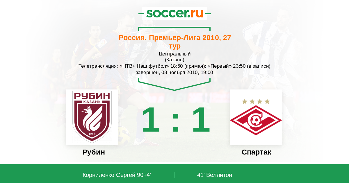 Протокол матча Рубин против Спартак