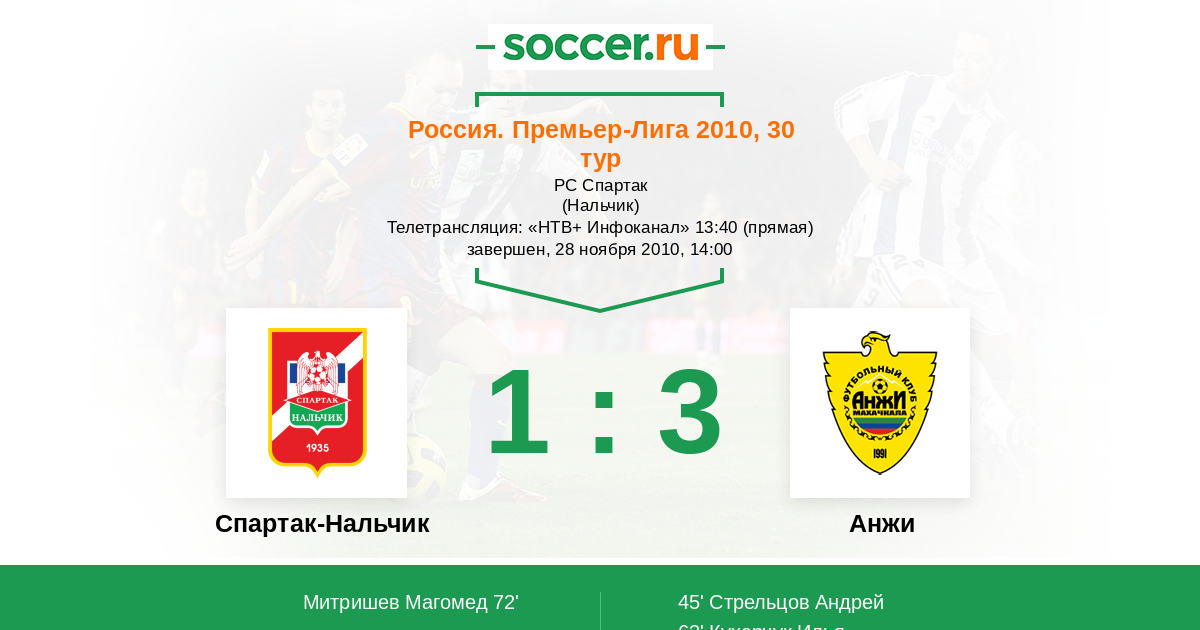 Протокол матча Спартак-Нальчик против Анжи