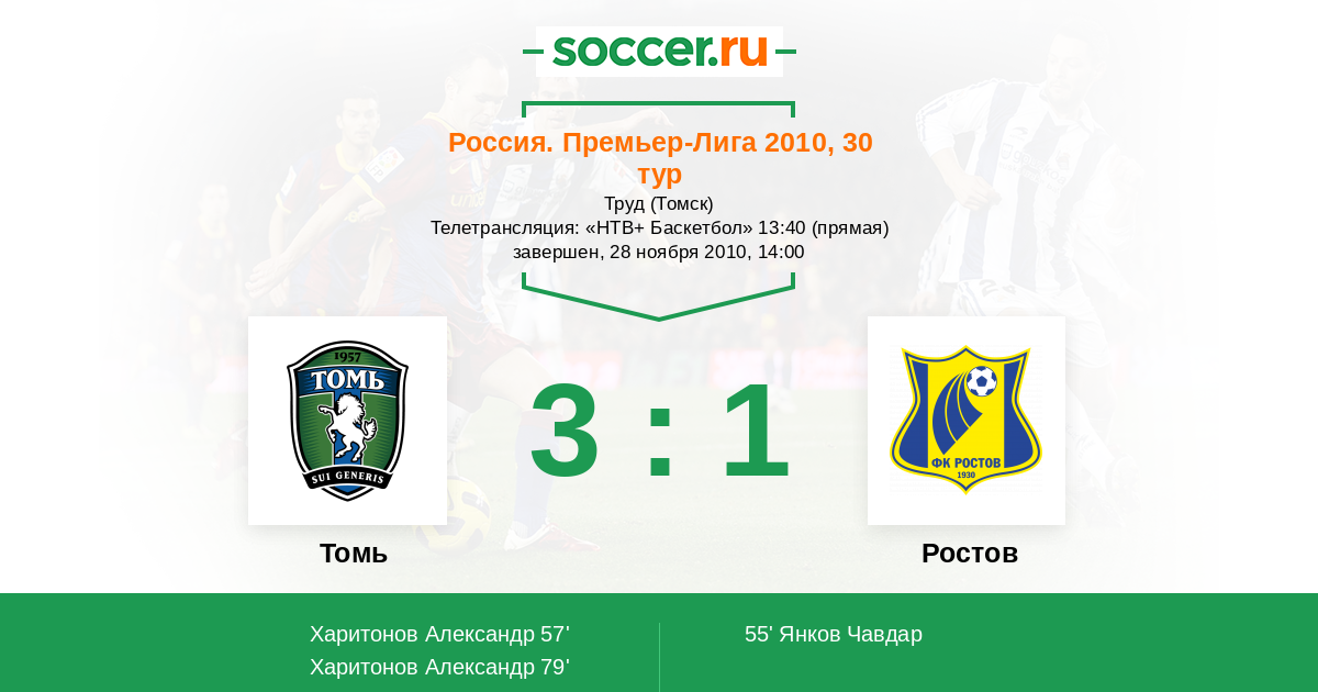 Протокол матча Томь против Ростов