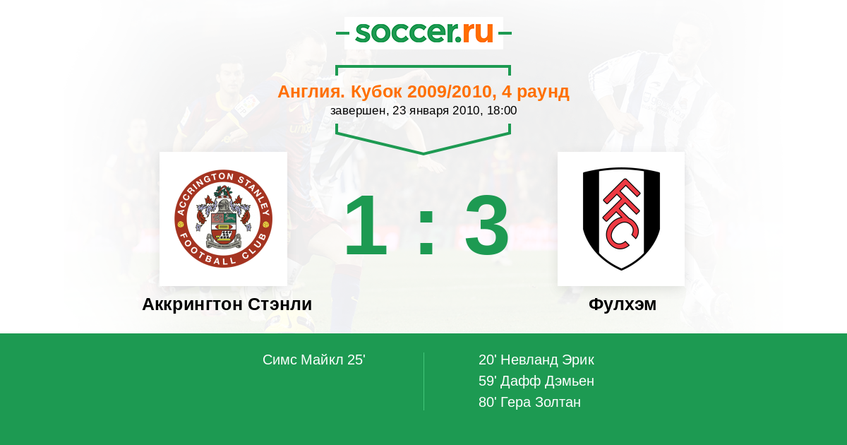 Протокол матча Аккрингтон Стэнли против Фулхэм