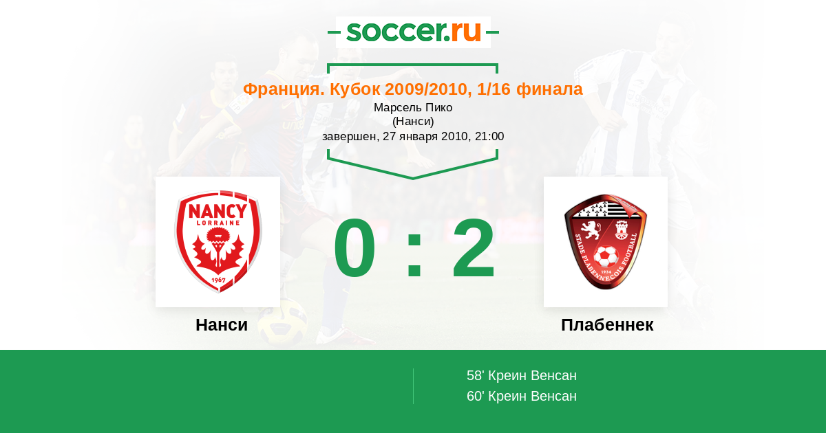Протокол матча Нанси против Плабеннек