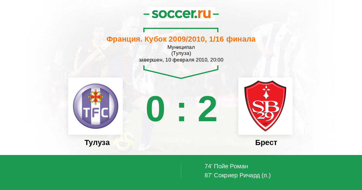 Протокол матча Тулуза против Брест