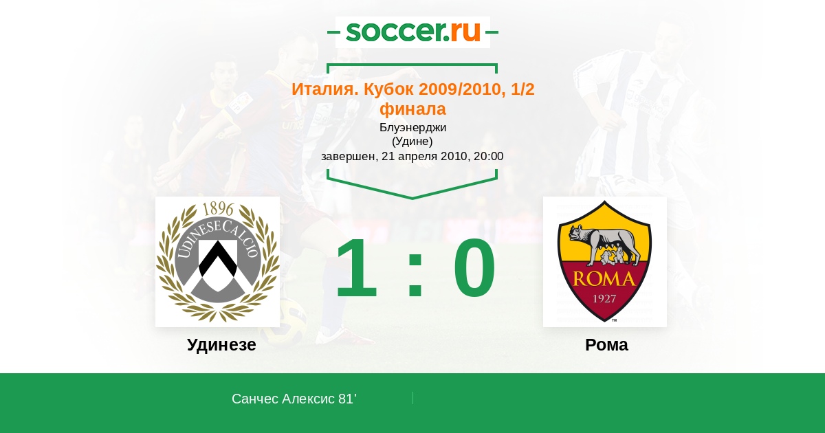 Протокол матча Удинезе против Рома