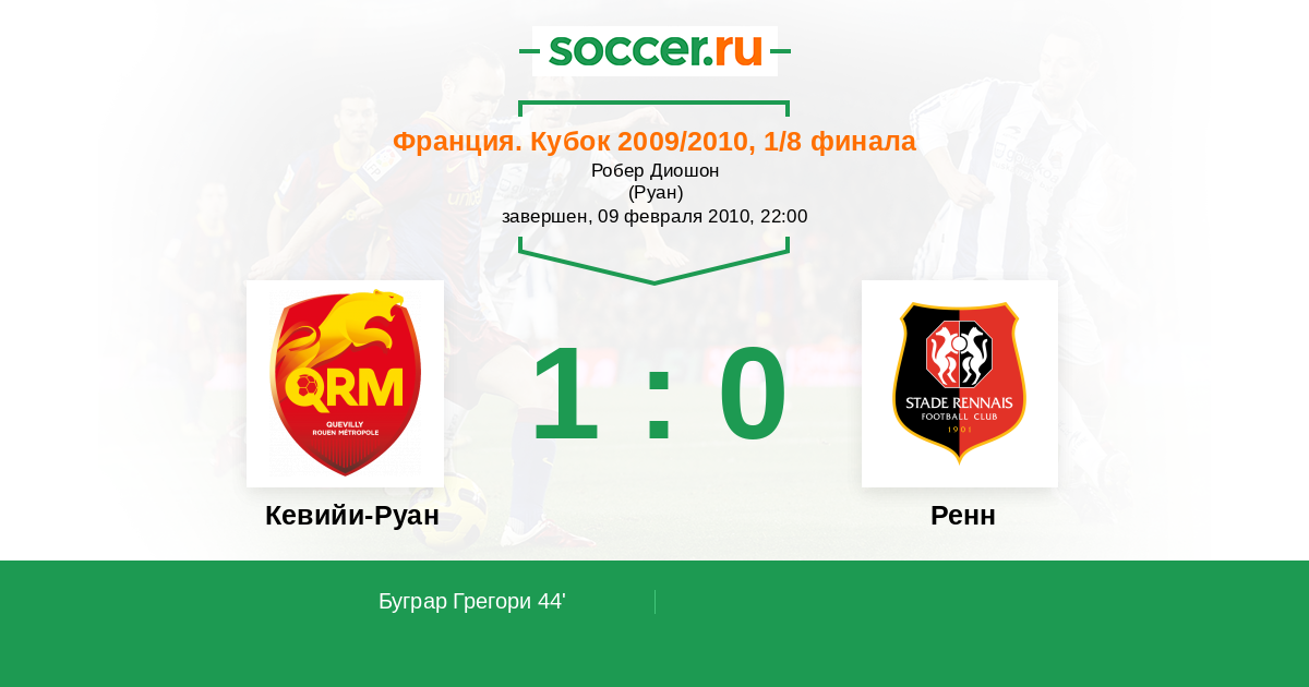 Протокол матча Кевийи-Руан против Ренн