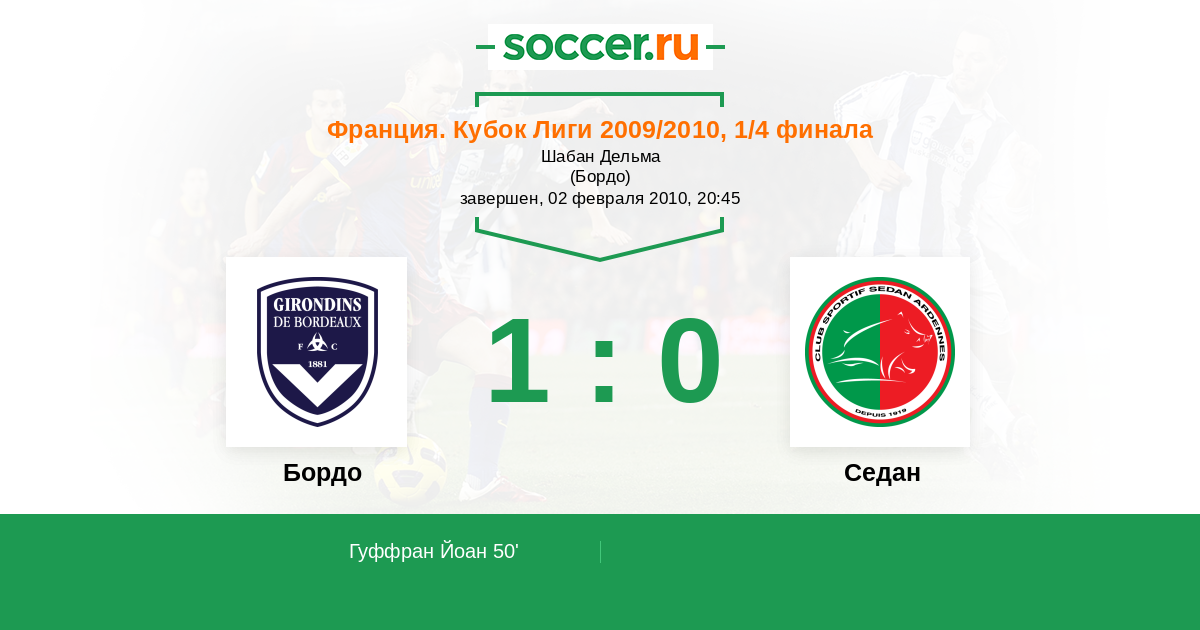 Протокол матча Бордо против Седан