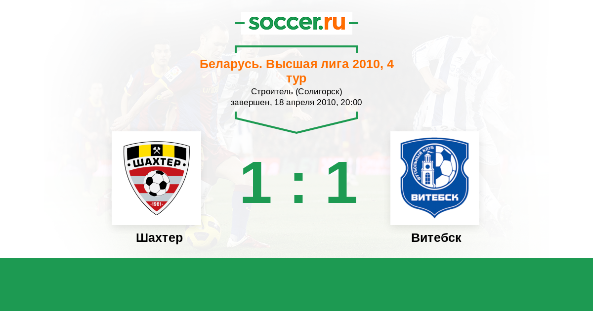 Беларусь. Высшая лига 10.04.2011 Шахтер Логотип футбольный клуб Шахтер (Солигорск) 1:0 Логотип футбольный клуб Витебск Витебск