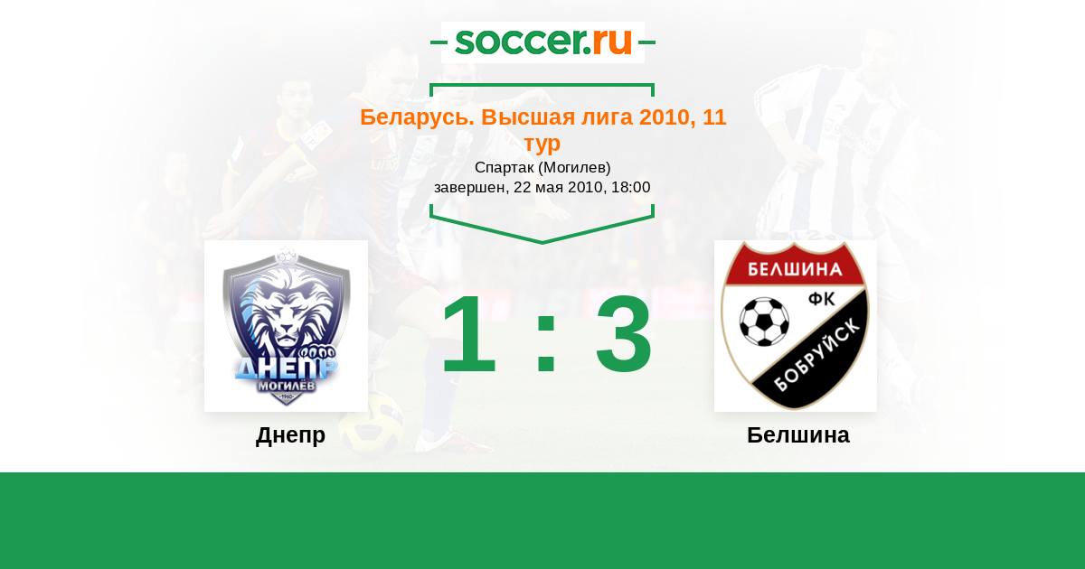Беларусь. Высшая лига 18.09.2010 Белшина Логотип футбольный клуб Белшина (Бобруйск) 1:1 Логотип футбольный клуб Днепр (Могилев) Днепр
