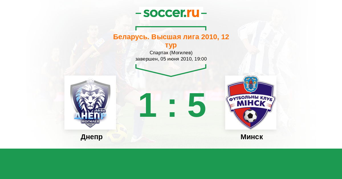 Беларусь. Высшая лига 12.09.2010 Днепр Логотип футбольный клуб Днепр (Могилев) 3:0 Логотип футбольный клуб Минск Минск