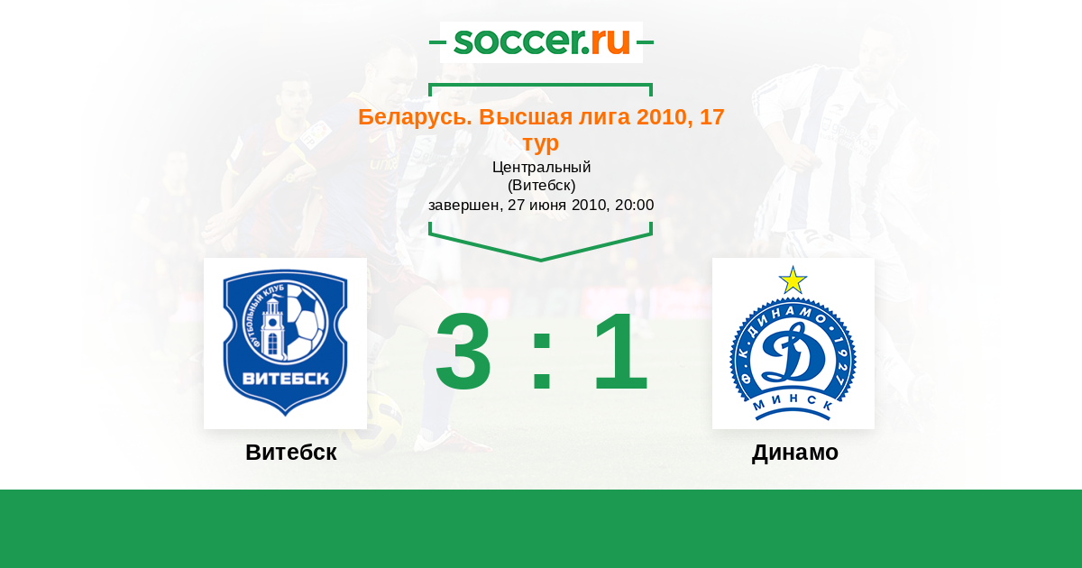 Беларусь. Высшая лига 26.09.2010 Динамо Логотип футбольный клуб Динамо (Минск) 0:2 Логотип футбольный клуб Витебск Витебск