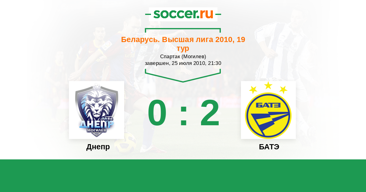 Беларусь. Высшая лига 01.08.2009 Днепр Логотип футбольный клуб Днепр (Могилев) 3:1 Логотип футбольный клуб БАТЭ (Борисов) БАТЭ