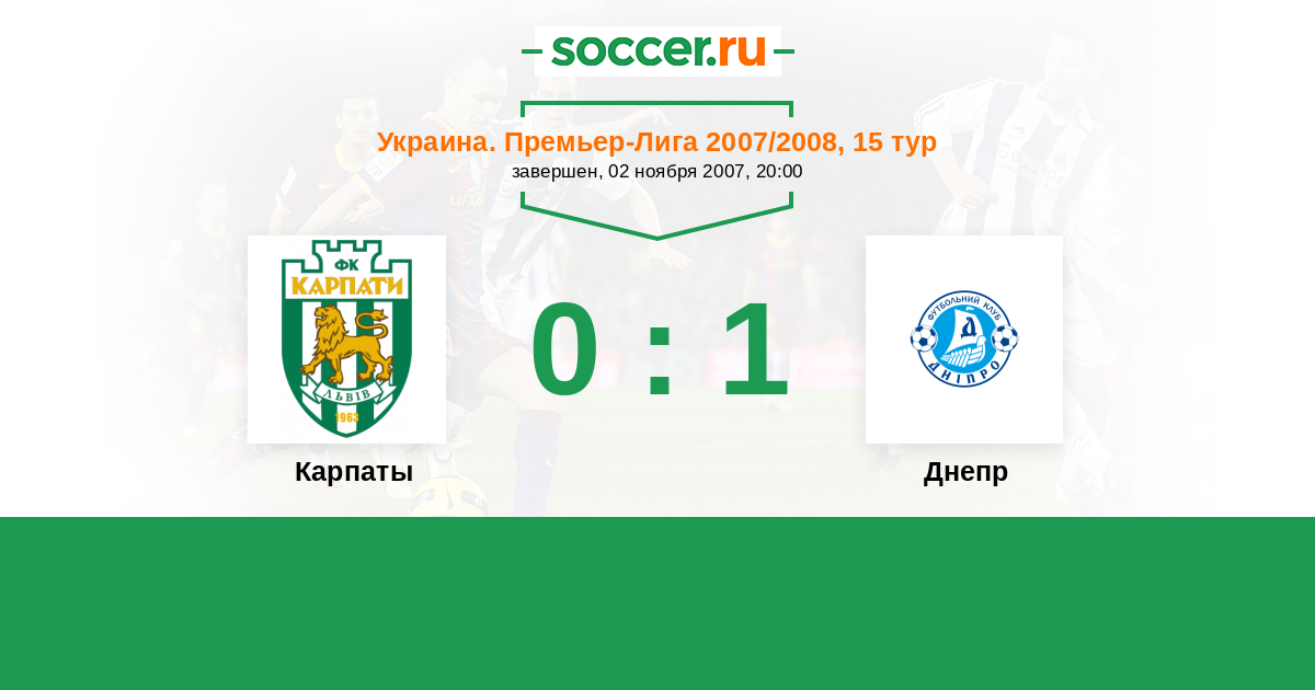 Украина. Премьер-Лига 23.08.2008 Карпаты Логотип футбольный клуб Карпаты (Львов) 0:0 Логотип футбольный клуб Днепр (Днепропетровск) Днепр