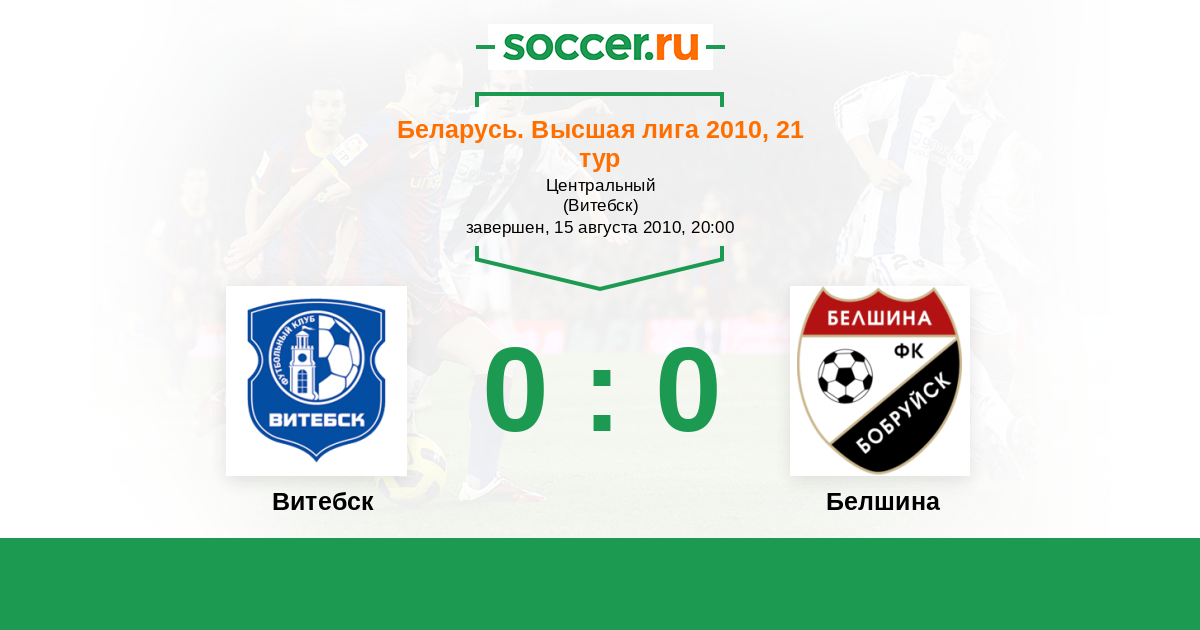 Беларусь. Высшая лига 02.10.2010 Витебск Логотип футбольный клуб Витебск 0:2 Логотип футбольный клуб Белшина (Бобруйск) Белшина