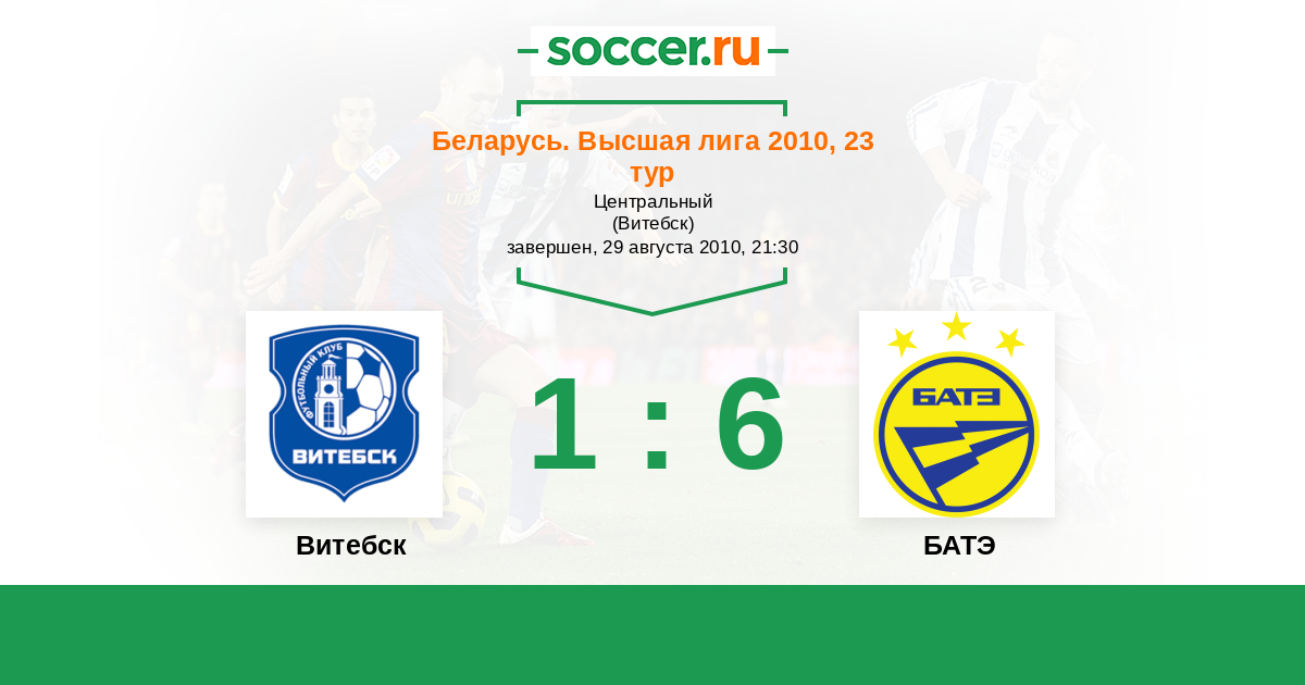 Беларусь. Высшая лига 02.05.2010 Витебск Логотип футбольный клуб Витебск 0:0 Логотип футбольный клуб БАТЭ (Борисов) БАТЭ