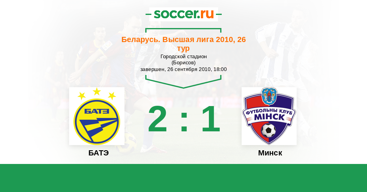 Беларусь. Высшая лига 14.04.2010 Минск Логотип футбольный клуб Минск 0:0 Логотип футбольный клуб БАТЭ (Борисов) БАТЭ