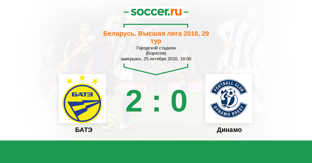 Беларусь. Высшая лига 22.08.2010 Динамо Логотип футбольный клуб Динамо (Брест) 1:4 Логотип футбольный клуб БАТЭ (Борисов) БАТЭ