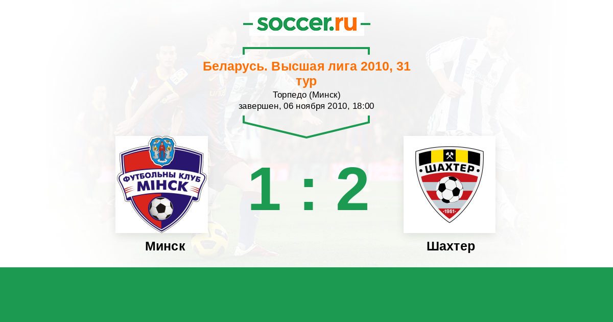 Беларусь. Высшая лига 02.05.2010 Минск Логотип футбольный клуб Минск 0:2 Логотип футбольный клуб Шахтер (Солигорск) Шахтер