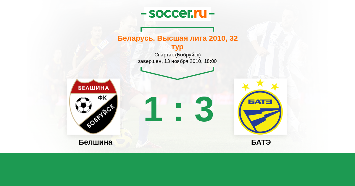 Беларусь. Высшая лига 09.06.2010 Белшина Логотип футбольный клуб Белшина (Бобруйск) 0:1 Логотип футбольный клуб БАТЭ (Борисов) БАТЭ