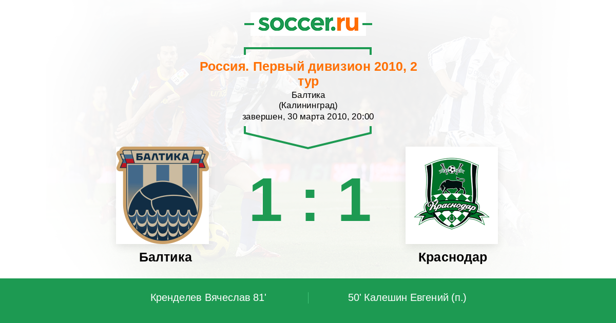 Протокол матча Балтика против Краснодар