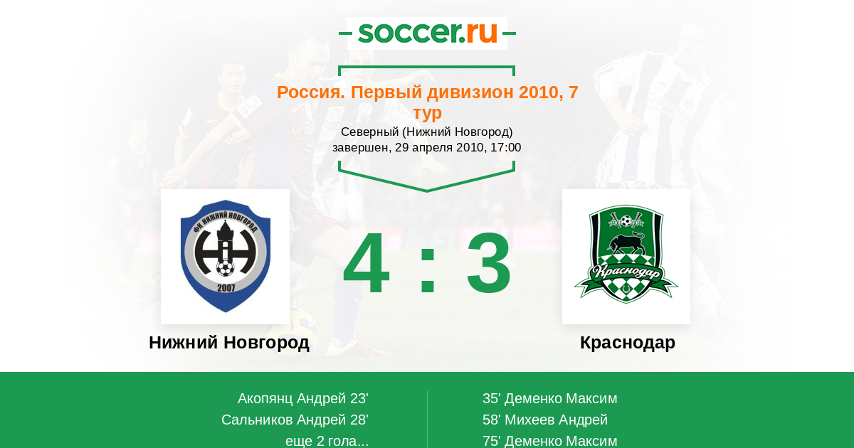 Протокол матча Нижний Новгород против Краснодар
