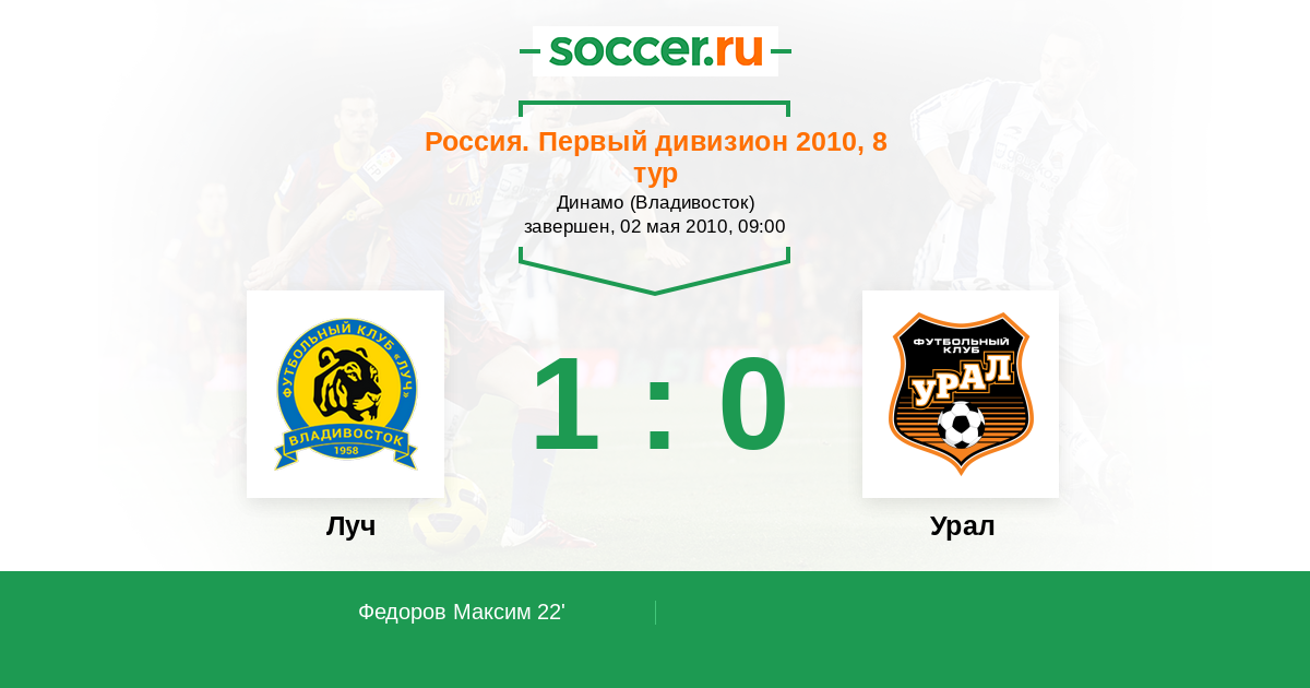 Протокол матча Луч против Урал