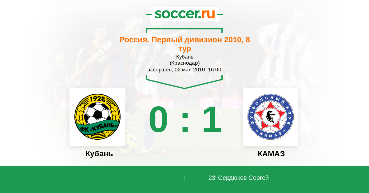 Протокол матча Кубань против КАМАЗ