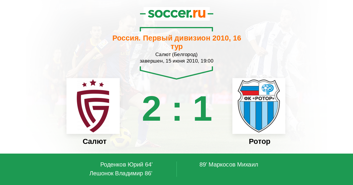 Протокол матча Салют против Ротор