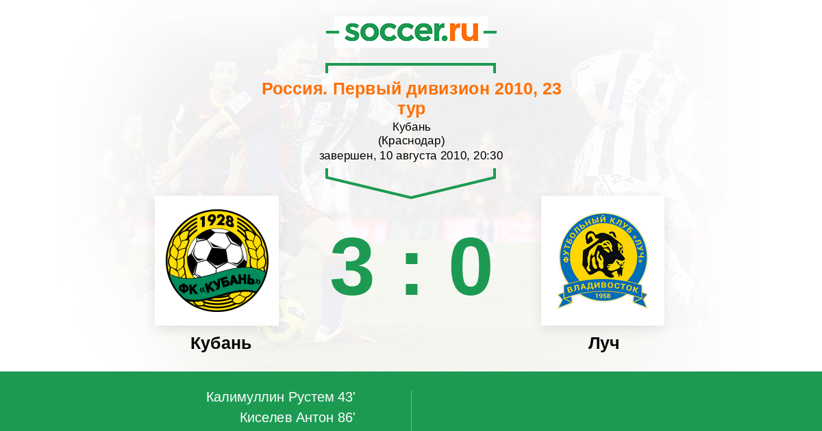 Протокол матча Кубань против Луч
