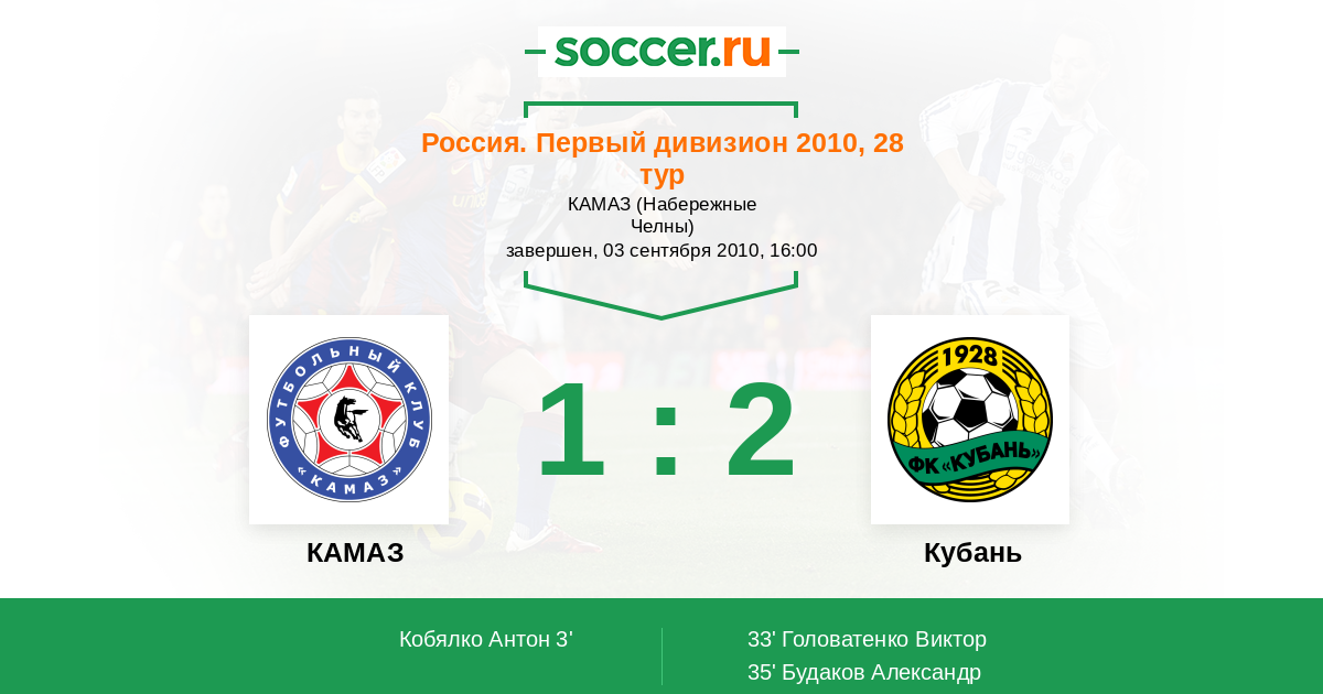 Протокол матча КАМАЗ против Кубань