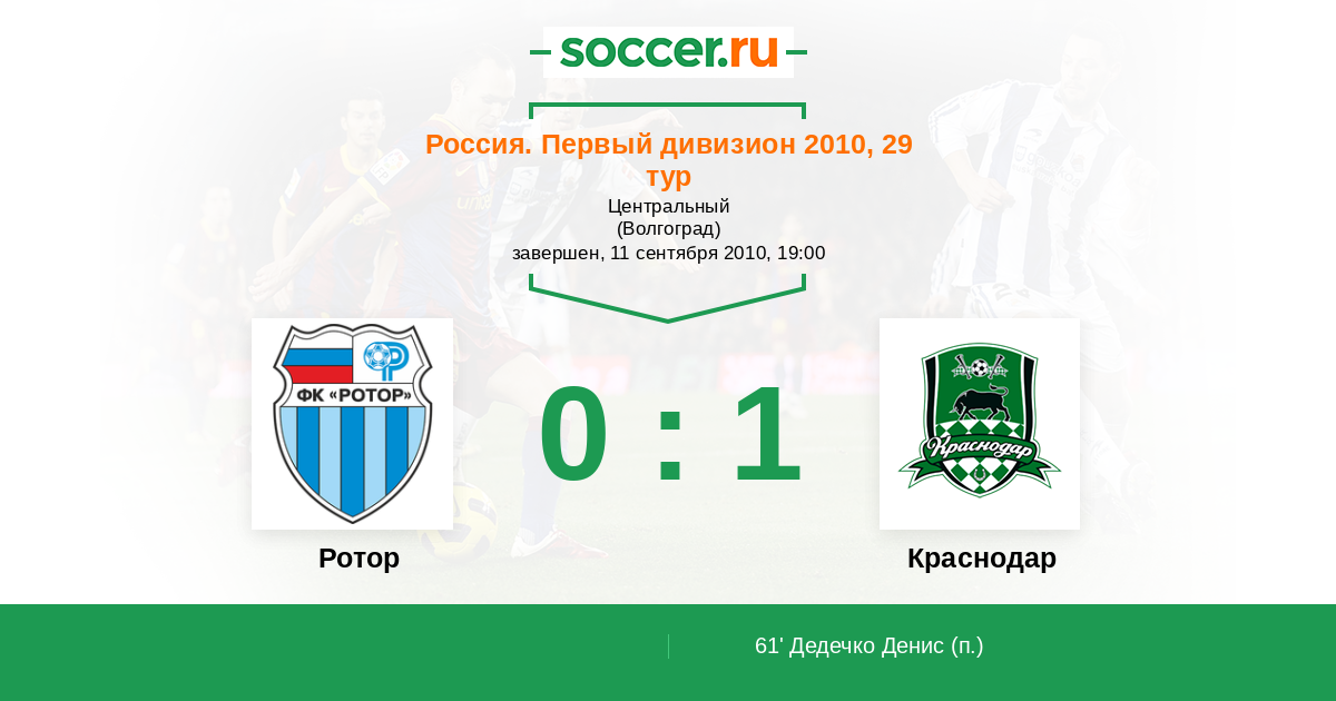 Протокол матча Ротор против Краснодар