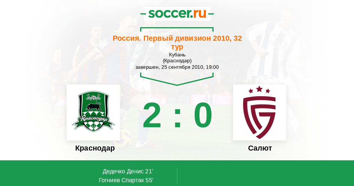 Протокол матча Краснодар против Салют