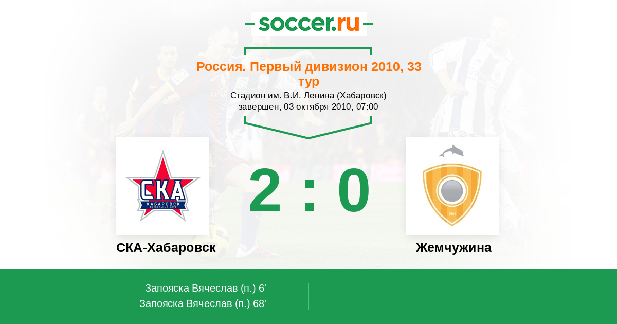 6' (1:0) Запояска Вячеслав