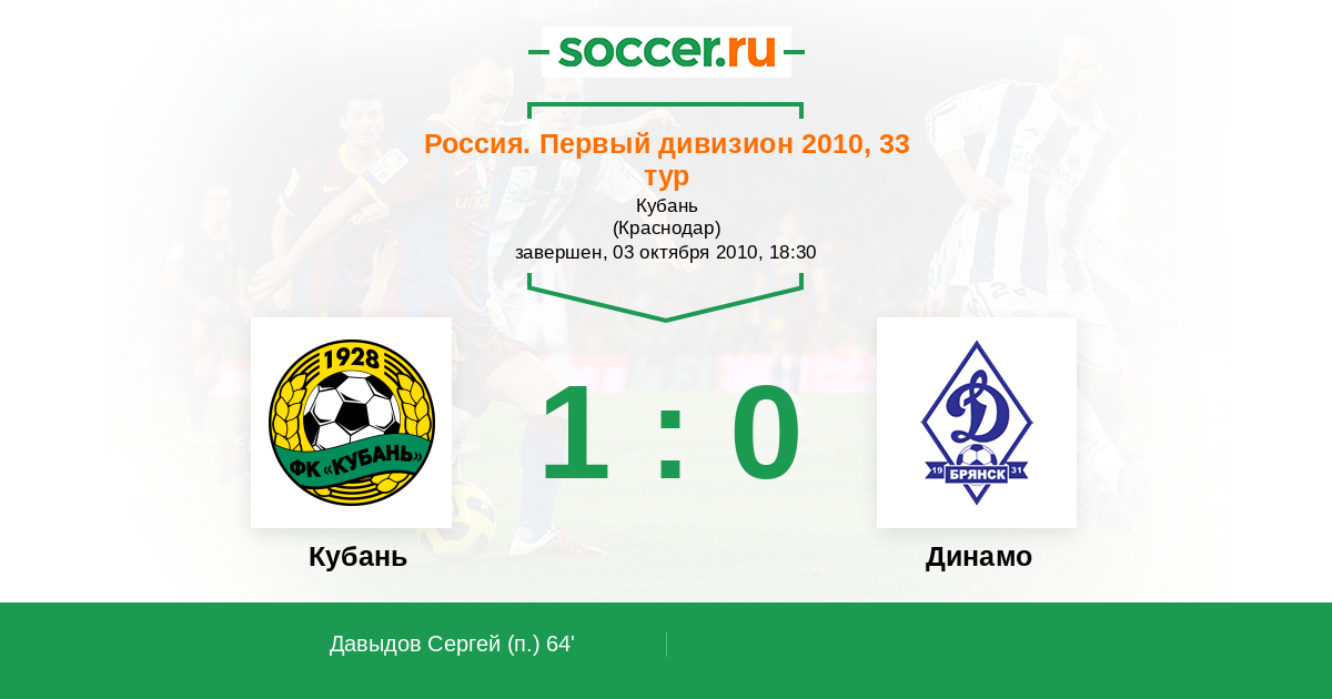 Протокол матча Кубань против Динамо Брянск