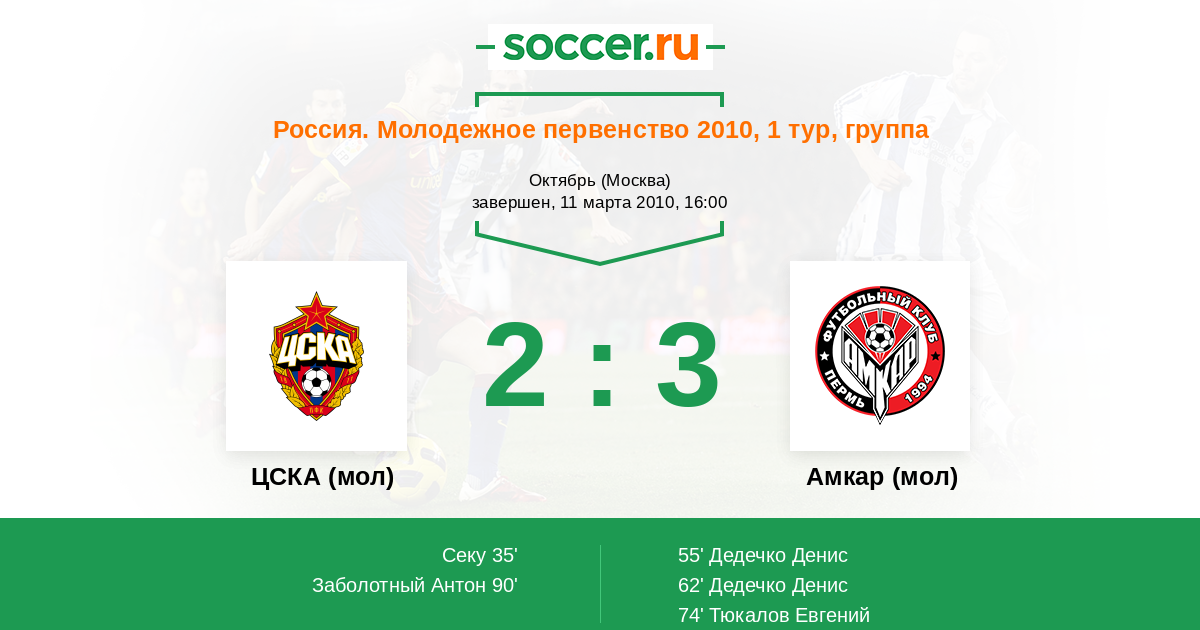 Протокол матча ЦСКА (мол) против Амкар (мол)