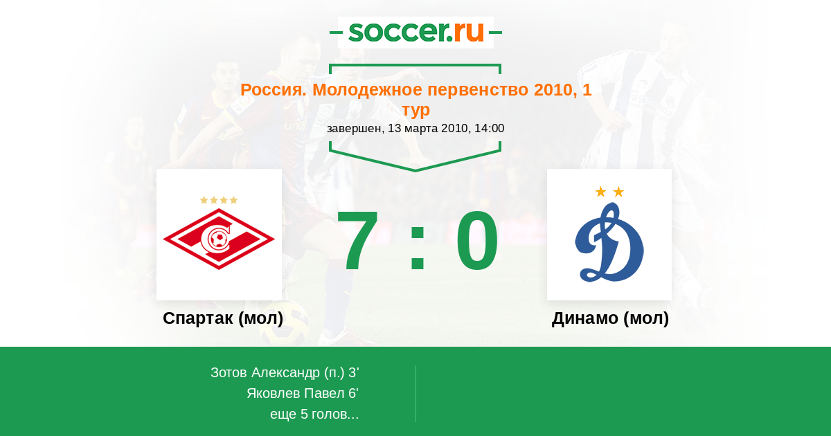 Протокол матча Спартак (мол) против Динамо (мол)