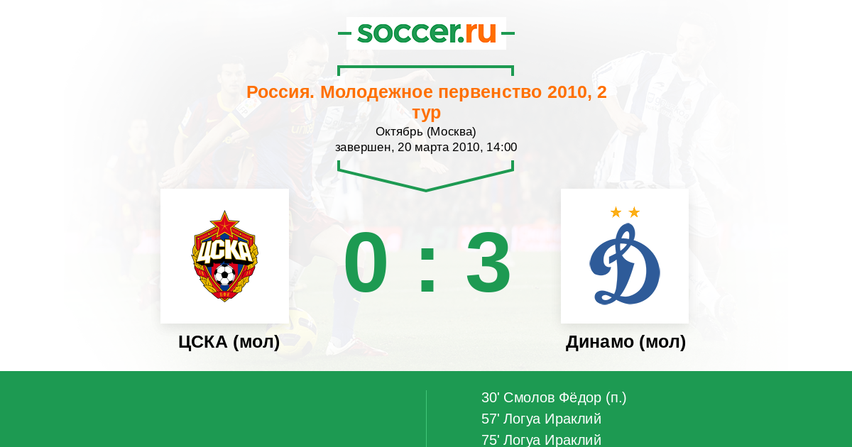 Протокол матча ЦСКА (мол) против Динамо (мол)