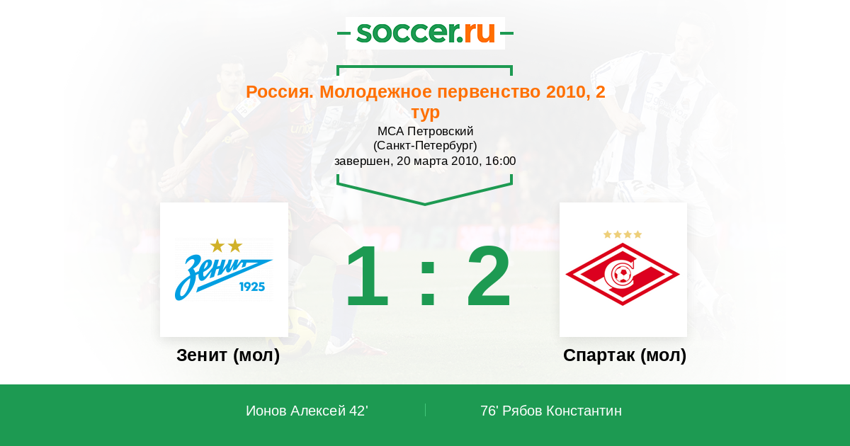 Протокол матча Зенит (мол) против Спартак (мол)