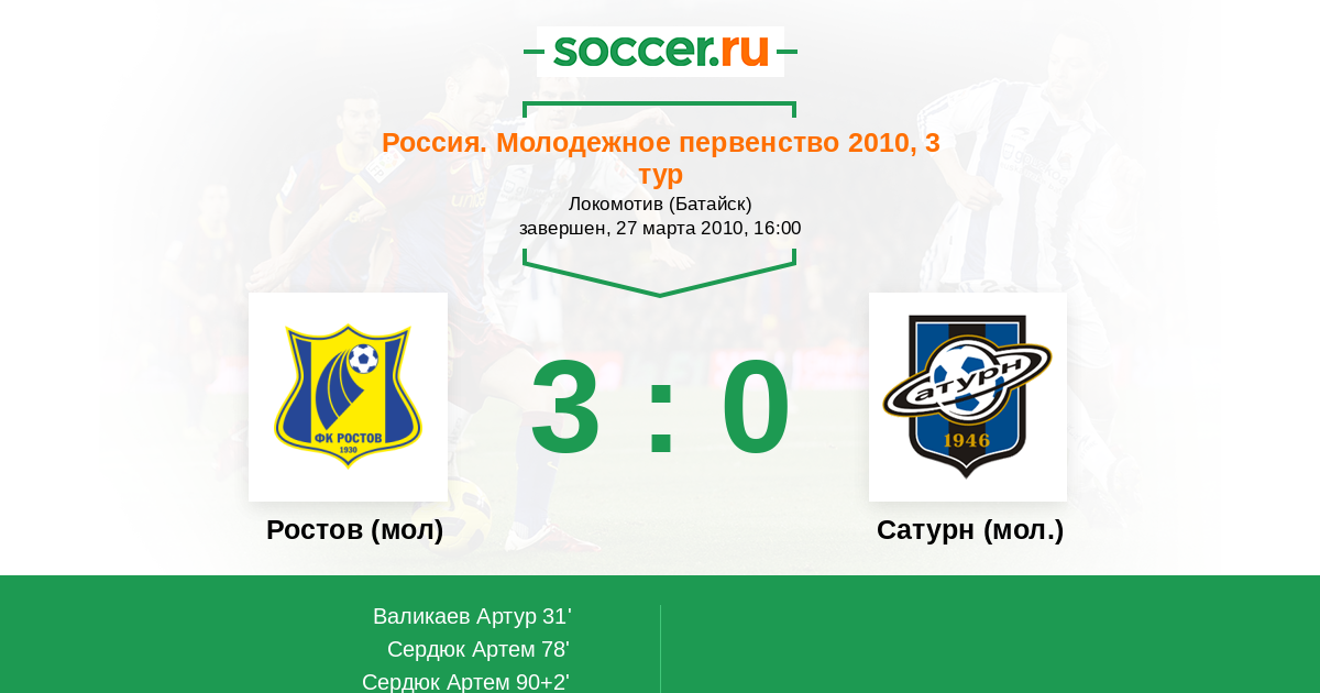 Протокол матча Ростов (мол) против Сатурн (мол.)