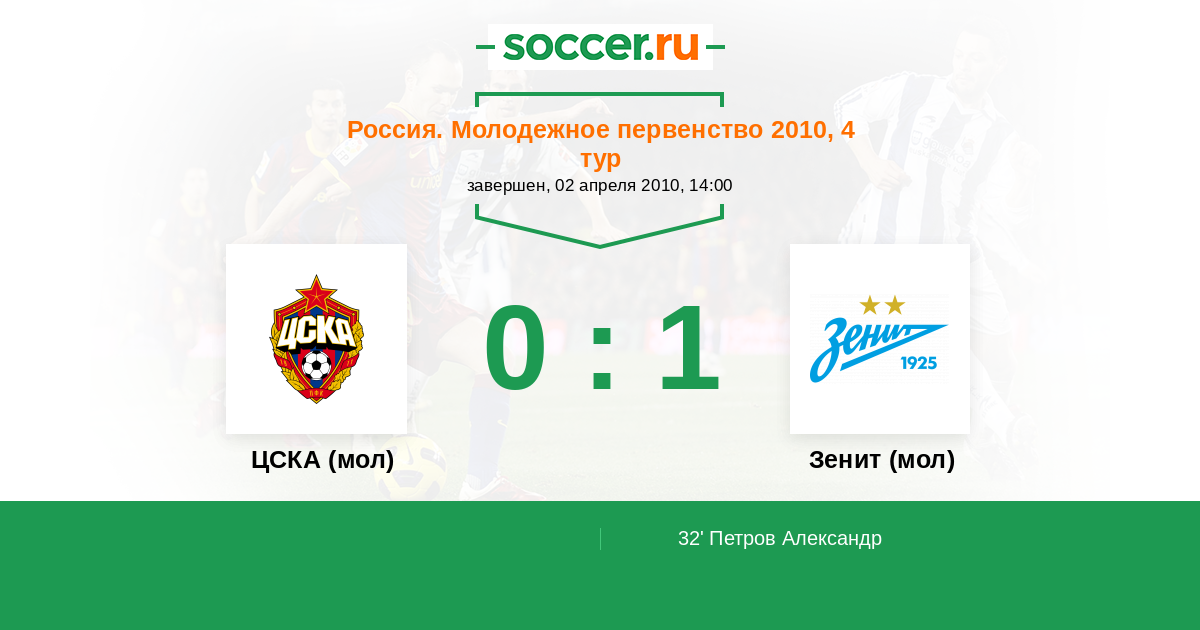 Протокол матча ЦСКА (мол) против Зенит (мол)