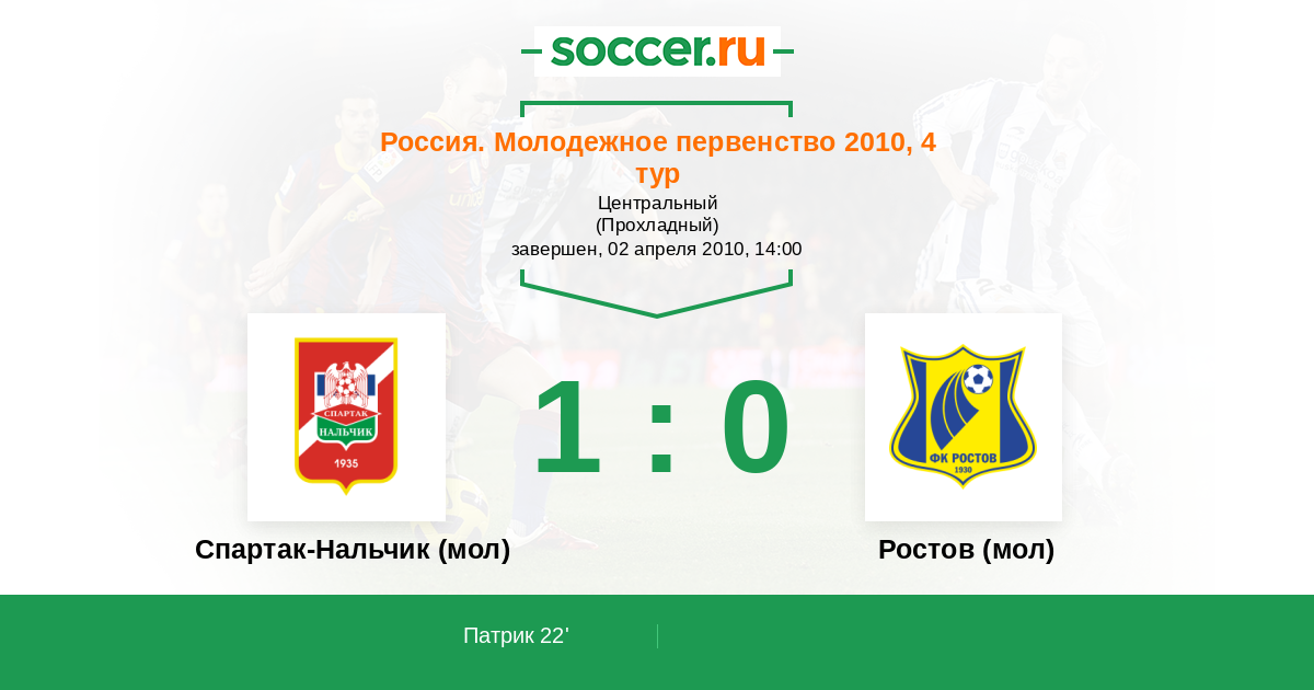 Протокол матча Спартак-Нальчик (мол) против Ростов (мол)